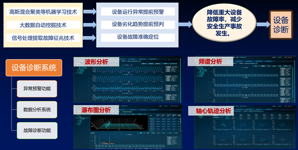 設備診斷系統:通過人工智能算法實現提前預警和(hé)劣化趨勢預測;遠程監測、分析、診斷設備狀态,保障設備安全穩定性,減少現地(dì)工作。(包含7大預警、分析及診斷子(zǐ)系統。)