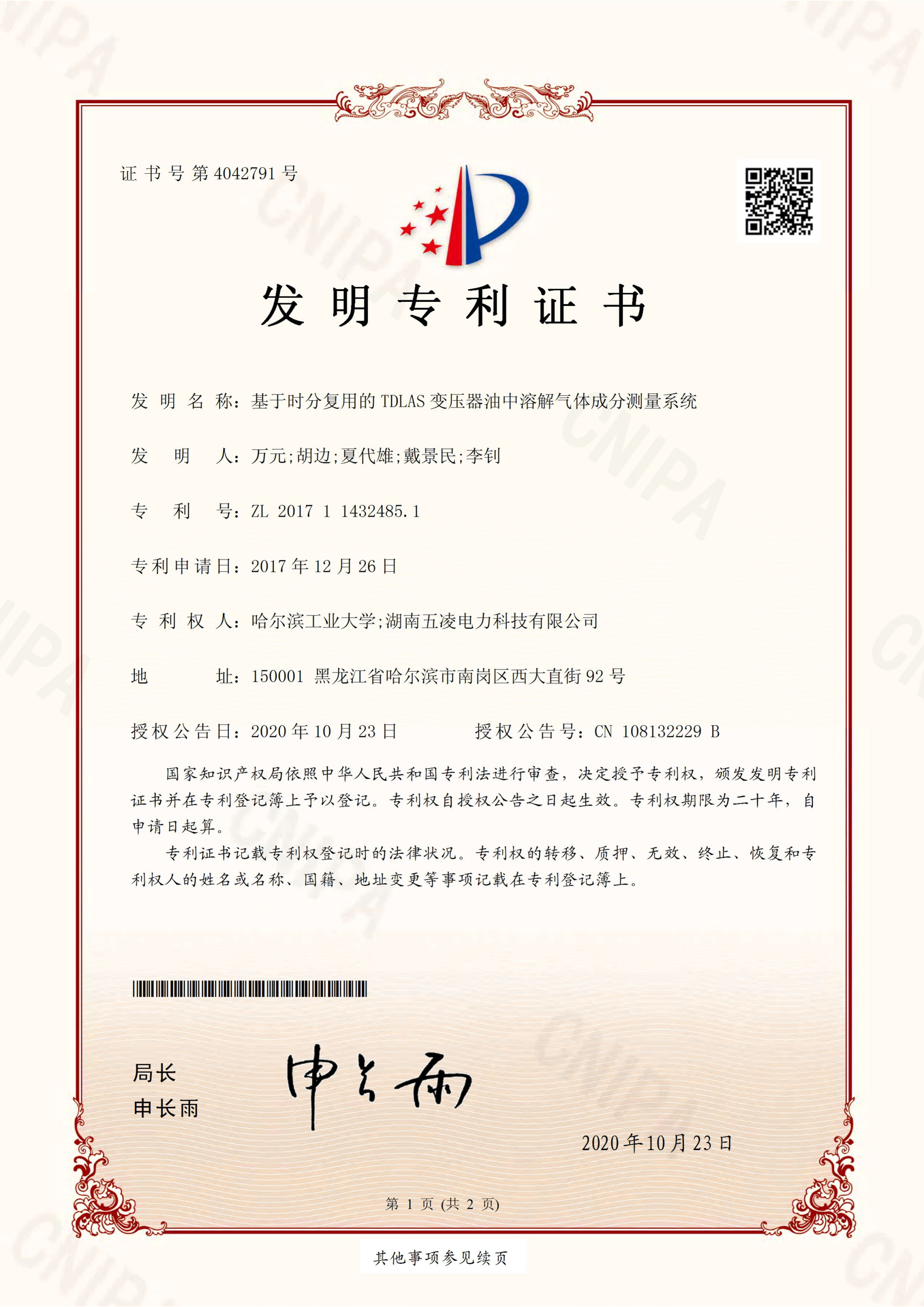 202110053557.1嘉興恒創電力集團有限公司五淩電力有限公司機組變壓器和(hé)輔機狀态監測智能預警方法發明專利證書(簽章(zhāng))_1